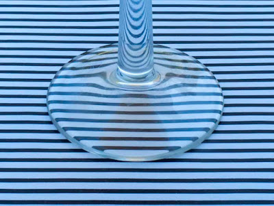 Una imagen del pie de una copa sobre fondo rayado.